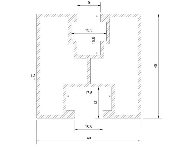 - 40x40 mm - przekrój.